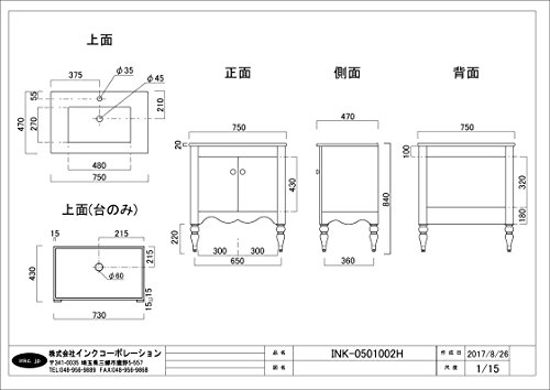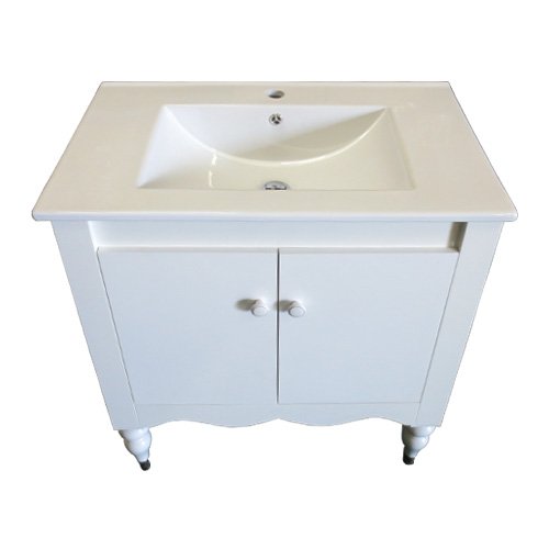 - 洗面台 洗面化粧台 「陶器洗面ボウル+化粧台+プッシュ式排水栓」の3点セット ホワイト 幅75cm INK-0501002H