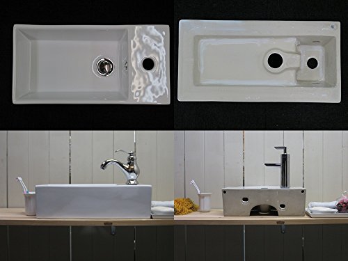 ○陶器製品寸法には公差がございます。 ○蛇口、台、排水トラップ類は別途でのご購入となります。 ○ポップアップ式排水栓は使用出来ませんので、ご注意ください。 ○プッシュアップ式排水栓シルバー(銀)色が1個付属します。 〇付属のプッシュアップ式排水栓のパイプ径はΦ32となりますので、排水管のSトラップ(床排水用)及びPトラップ(壁排水用)はΦ32と適合致します。 〇プッシュアップ式排水栓は追加料金+¥2.000で、 ゴールド(金)、アンティークゴールド(古金)、ブロンズ(古銅)、ブラック(黒)色にご変更頂けます。 〇本体サイズ:幅48×奥行23.7×高14.5cm 〇材質:陶器製 ■ご不明な点等ございましたら、お気軽に当店までお問合せください。