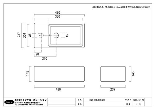 - 洗面ボウル 陶器 オンカウンタータイプ 小サイズ 幅48cm INK-0405030H