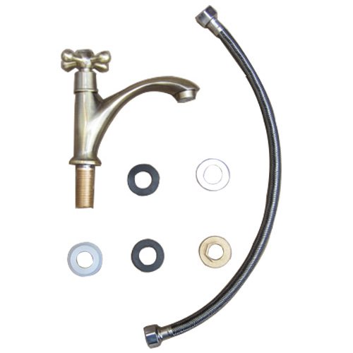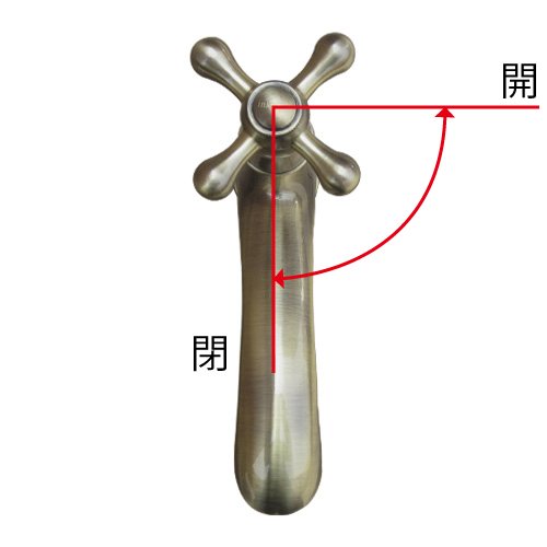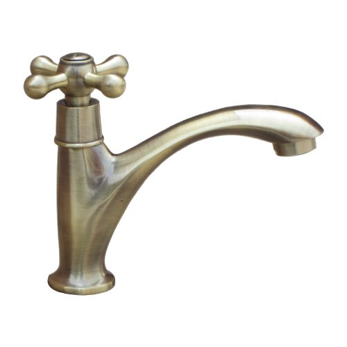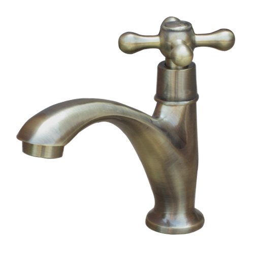 洗面水栓 蛇口 水栓金具 単水栓 クロスハンドル アンティークゴールド(古金) [奥行15.5×吐水口高9cm] INK-0302063H