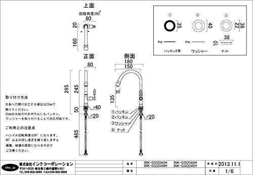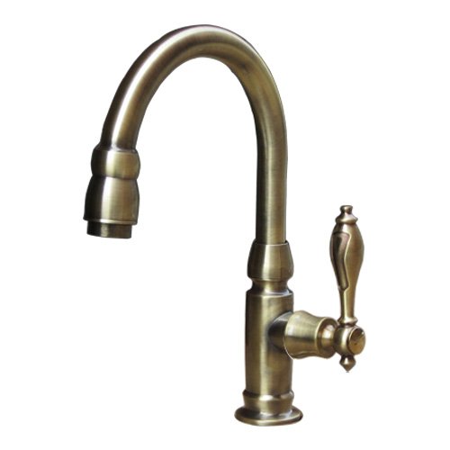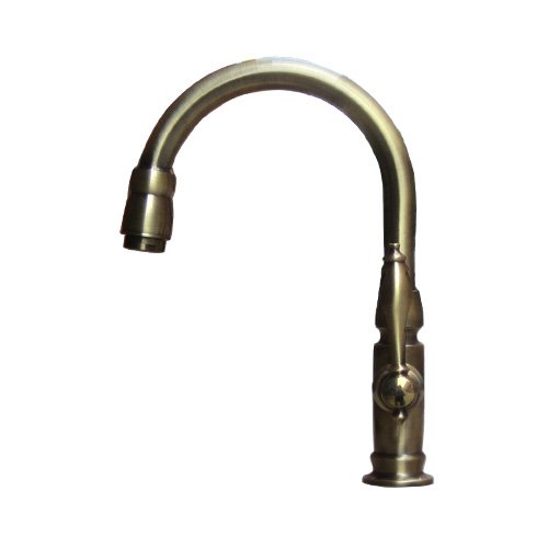 洗面水栓 蛇口 水栓金具 単水栓 シングルレバーハンドル(スパウト可動式) アンティークゴールド(古金) [奥行18×吐水口高13.5cm] INK-0302045H