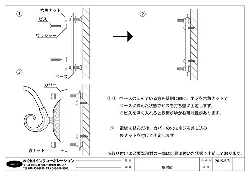 ●口金がE26タイプでご使用可能です。 LEDライトの形状によっては取付できない物が ございますのでご確認ください。 ●本体、ビスが付属します。(電球は付属しておりません。) ●取付工事はお近くの工務店様にご相談くださいませ。 【 サイズ:W135*D225*H290 】 【素材:鉄+ガラス】 【重量:約 kg】 【口金:E26】