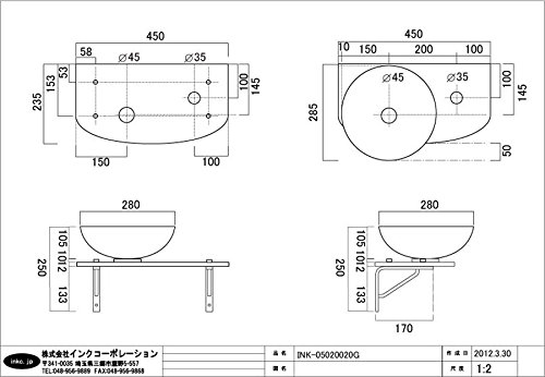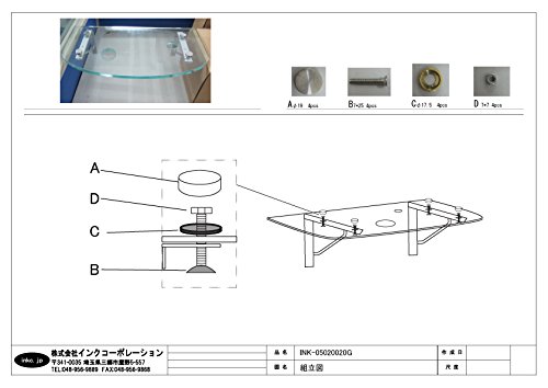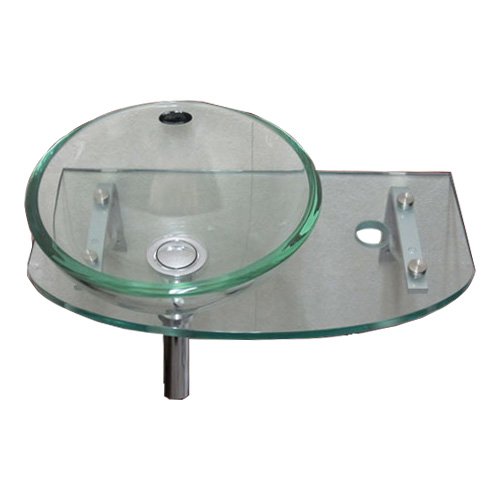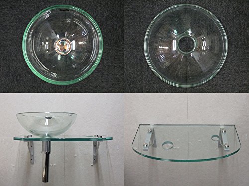 〔INK-05020020G〕 強化ガラス製洗面ボウル+ガラス台+ステンレス金具セット 【サイズ:W450*D285*H250】