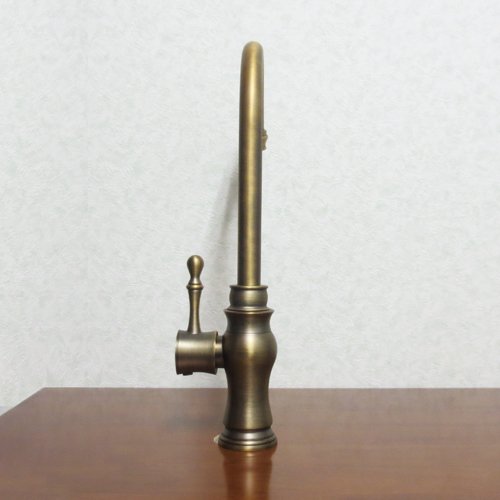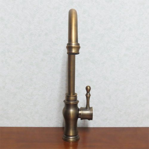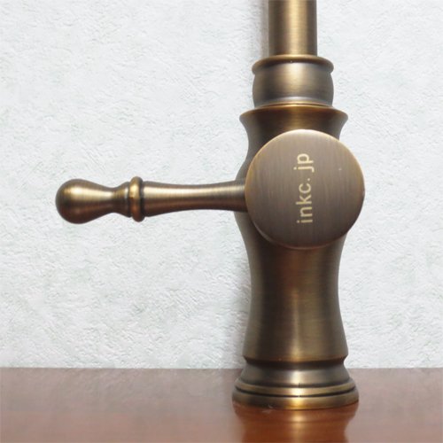 洗面水栓 蛇口 水栓金具 単水栓 シングルレバーハンドル(スパウト可動式) トールタイプ ブロンズ(古銅) [奥行19.5×吐水口高26cm] INK-0302038G