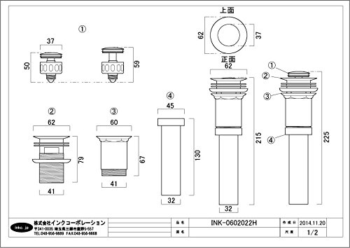 排水栓 プッシュアップ式 ゴミキャッチャー付 オーバーフロー有り Φ32mm シルバー(銀) INK-0602022H