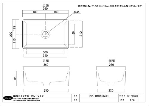 洗面ボウル 陶器 オンカウンタータイプ 【幅36×奥行23×高12cm】 INK-0405069H