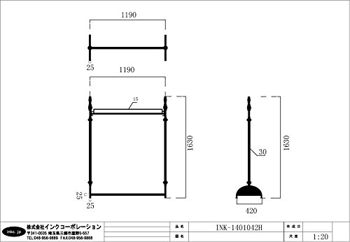 ハンガーラック 洋服掛け アイアン製 鉄 アンティーク風 ブラック [幅119×高163cm] INK-1401042H