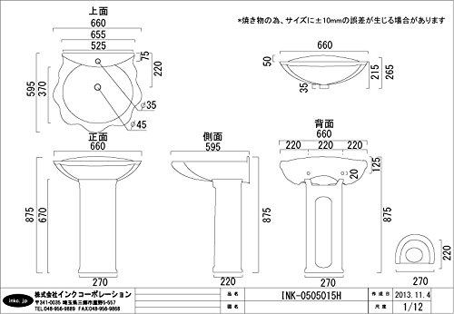 ●陶器製品寸法には公差がございます。 ●蛇口・排水パイプは別途でのご購入となります。 ●本体は組立式となっており、シンクと脚部分は 別梱包となっております。 ●シンク部分は壁に取り付け、脚部分はシンク接着面と 床接着面をシリコンでとめます。 ●取付工事は弊社でも承っておりますので、 お気軽にご相談くださいませ。 または お近くの工務店様にご相談くださいませ。 ●プッシュアップ式排水栓1個が付属します。 【 サイズ:W660*D595*H875】