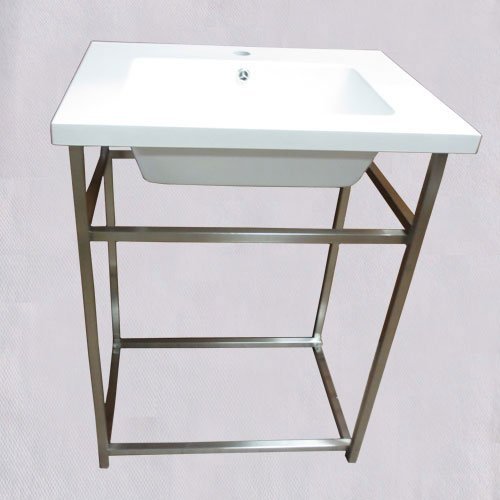 - 洗面台 洗面化粧台 「人工大理石製洗面ボウル+ステンレス台+プッシュアップ式排水栓」の3点セット ホワイト 幅60cm INK-04130057Hset