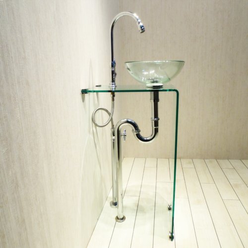 洗面台セット 「ガラス洗面ボウル+アクリル製カウンター+単水栓+プッシュアップ式排水栓+トラップ」の5点セット 幅30cm 〔Aセット17〕INK-0504140J