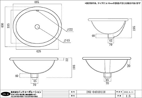 INK-0401011H オーバーカウンタータイプ オーバル 陶器製 洗面ボウル