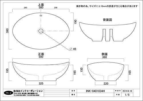 洗面ボウル 陶器 オンカウンタータイプ オーバル 幅58.5cm INK-0401034H