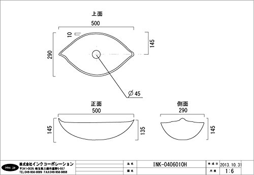 ●陶器製品寸法には公差がございます。 ●蛇口・台は別途でのご購入となります。 ●レバー式排水栓は使用出来ませんので、ご注意ください。 ●オーバーフローは付いておりません。 ●取付工事は弊社でも承っておりますので、 お気軽にご相談くださいませ。 または お近くの工務店様にご相談くださいませ。 ●プッシュアップ式排水栓1個が付属します。 【 サイズ:W500*D290*H145】