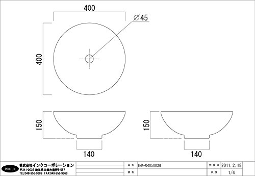洗面ボウル 陶器 オンカウンタータイプ ラウンド 幅40cm INK-0401023H