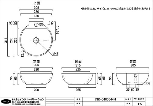 INK-0405044H オンカウンタータイプ ラウンド 陶器製 洗面ボウル