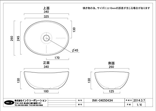 洗面ボウル 陶器 オンカウンタータイプ オーバル 小サイズ 幅34cm INK-0405043H