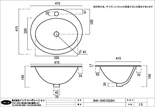 洗面ボウル 陶器 オーバーカウンタータイプ 埋め込み オーバル 幅47.5cm INK-0401028H