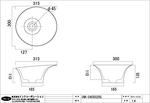 〔INK-0405020G〕 オンカウンタータイプ 小サイズ 陶器製 洗面ボウル 【サイズ:W300*D315*H135】