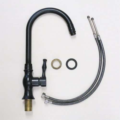 蛇口 混合水栓 スパウト可動式 レバーハンドル ブラック(黒) [奥行27×吐水口高28.2cm] INK-0303059G