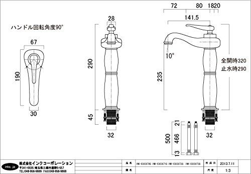 【サイズ】 幅:67mm 奥行き:190mm 高さ:290mm 吐水口高さ:235mm 【素材】 銅合金 【セット内容】 ・本体 ・フレキパイプ2本 ・取付金具 【取り付けについて】 取付工事は弊社でも承っておりますので、お気軽にご相談くださいませ。 または お近くの工務店様にご相談くださいませ。 【備考】 ・日本規格に適合致します。 ・在庫が無い場合、ご注文から納品まで約1ヶ月から1ヶ月半程、 お待ち頂く場合がございます。 ・こちらの商品は混合水栓となっております。 ・水栓取付穴は35mm開けて下さい。 ■ご不明な点などございましたらお気軽に当社までお問い合わせ下さいませ。