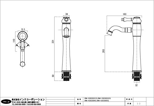 〔INK-03030221G〕 シングルレバーハンドル トールタイプ 混合水栓 ゴールド(金)
