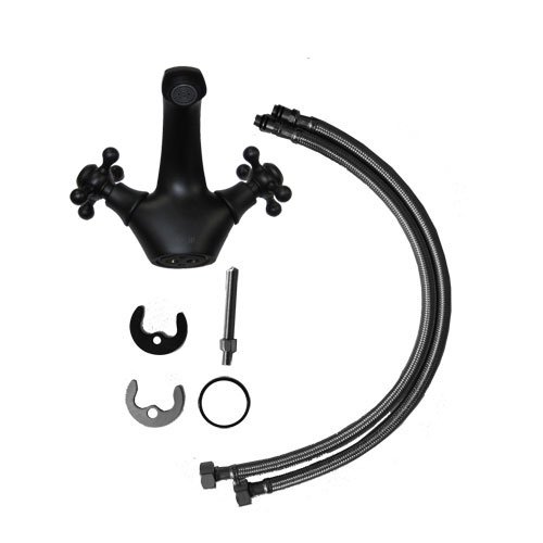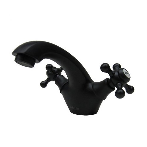 〔INK-0303087G〕 クロスレバーハンドル 混合水栓 洗面ボウル・洗面台用蛇口 ブラック(黒)