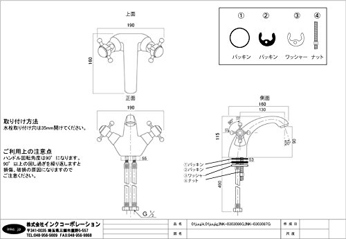 【サイズ】 高さ:115mm 幅:190mm 奥行き:160mm 吐水口高さ:90mm 【素材】 銅合金 【セット内容】 ・本体 ・フレキパイプ2本 ・取付金具 【取り付けについて】 取付工事は弊社でも承っておりますので、お気軽にご相談くださいませ。 または お近くの工務店様にご相談くださいませ。 【備考】 ・日本規格に適合致します。 ・在庫が無い場合、ご注文から納品まで約1ヶ月から1ヶ月半程、 お待ち頂く場合がございます。 ・こちらの商品は混合水栓となっております。 ・水栓取付穴は35mm開けて下さい。 ■ご不明な点などございましたらお気軽に当社までお問い合わせ下さいませ。