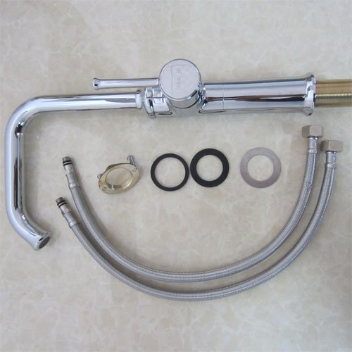 【サイズ】 幅:106.5mm 奥行き:195mm 高さ:373mm 吐水口高さ:318mm 【素材】 銅合金 【セット内容】 ・本体 ・フレキパイプ2本 ・取付金具 【取り付けについて】 取付工事はお近くの工務店様にご相談頂くか、 弊社でも承っておりますのでお気軽にお問合せください。 【備考】 ・日本規格に適合致します。 ・在庫が無い場合、ご注文から納品まで約1ヶ月から1ヶ月半程、 お待ち頂く場合がございます。 ・こちらの商品は混合水栓となっております。 ・水栓取付穴は35mm開けて下さい。 ■ご不明な点などございましたらお気軽に当社までお問い合わせ下さいませ。