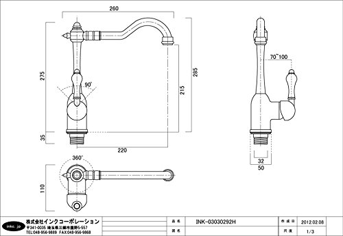 〔INK-03030292H〕 シングルレバーハンドル 混合水栓 シルバー(銀)