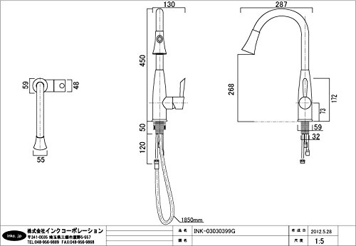 〔INK-03030399G〕 シングルレバーハンドル トールタイプ シャワーヘッド付 混合水栓 シルバー(銀)