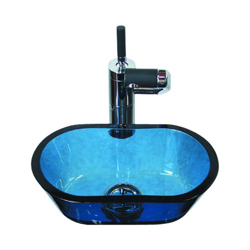 〔290mmoval-bl〕 強化ガラス製 オーバル 小サイズ 洗面ボウル ブルー 【サイズ:W290*D185*H90】