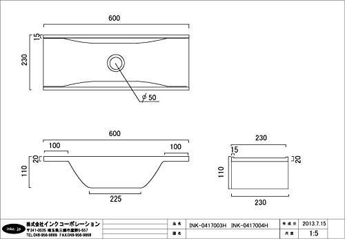 洗面ボウル PVC製 壁掛けタイプ 幅60cm INK-0417004H
