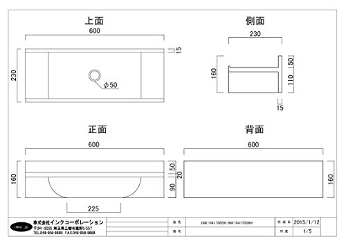 洗面ボウル PVC製 壁掛けタイプ ホワイト 幅60cm INK-0417006H