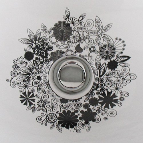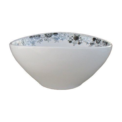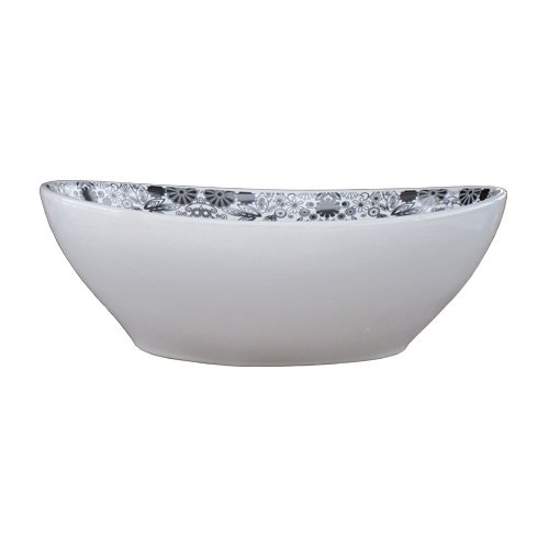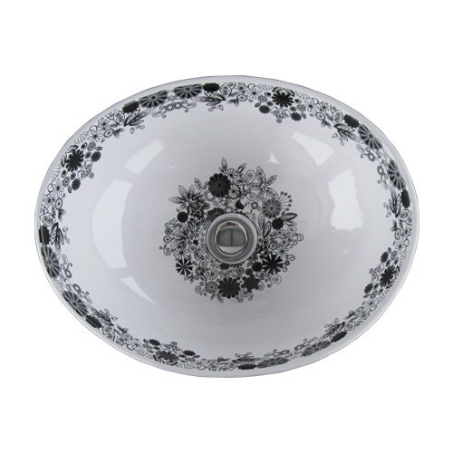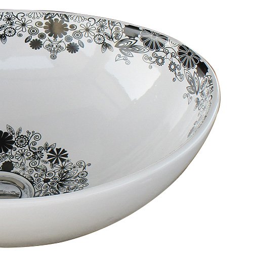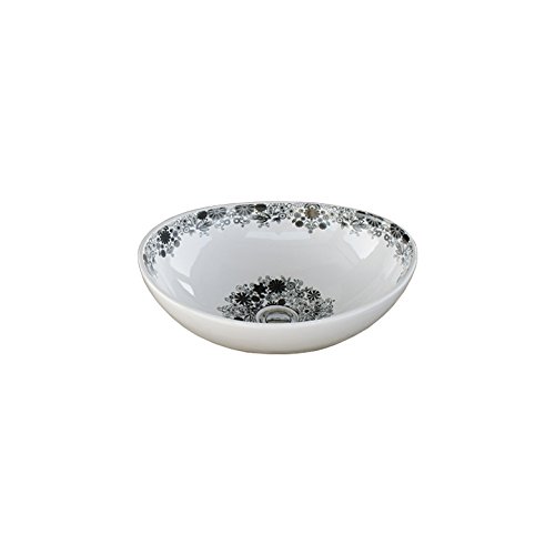 洗面ボウル 陶器 丸型 ボール 花柄 オンカウンターシンク 置き型 オーバーフロー無し 白黒 ホワイト 幅41×奥行33×高14.5cm INK-0403287H