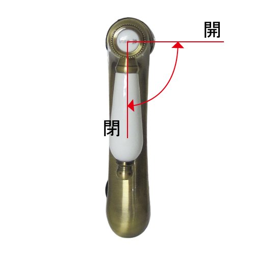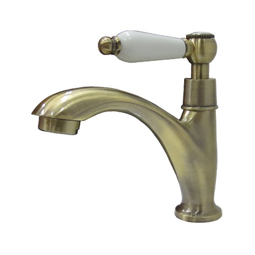 洗面水栓 蛇口 水栓金具 単水栓 シングルレバーハンドル 陶器 アンティークゴールド(古金) [奥行15×吐水口高9cm] INK-0302063HT