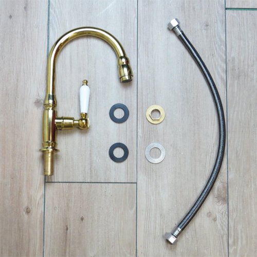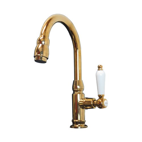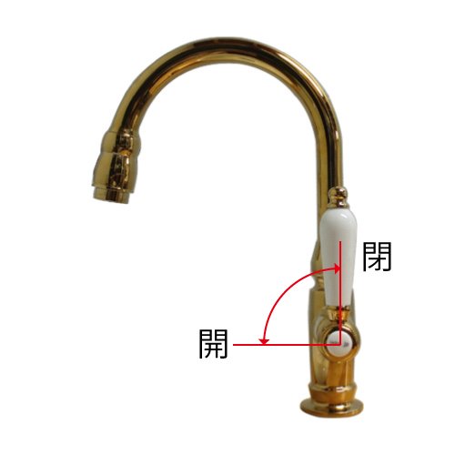 洗面水栓 蛇口 水栓金具 単水栓 シングルレバーハンドル 陶器(スパウト可動式) ゴールド(金) [奥行18×吐水口高13.5cm] INK-0302044HT