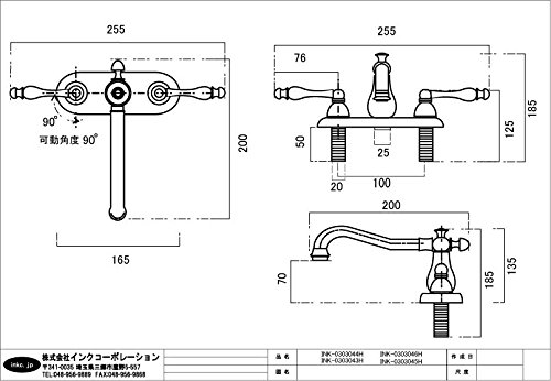 〔INK-0303045H〕 4インチ混合水栓(三つ穴混合水栓・水栓金具・洗面台用蛇口)アンティークゴールド(古金)