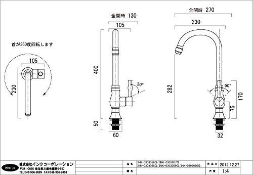 【サイズ】 幅:130mm 奥行き:270mm 高さ:400mm 吐水口高さ:282mm 【素材】 亜鉛合金 【セット内容】 ・本体 ・フレキパイプ2本 ・取付金具 【取り付けについて】 取付工事は弊社でも承っておりますので、お気軽にご相談くださいませ。 または お近くの工務店様にご相談くださいませ。 【備考】 ・日本規格に適合致します。 ・在庫が無い場合、ご注文から納品まで約1ヶ月から1ヶ月半程、 お待ち頂く場合がございます。 ・こちらの商品は混合水栓となっております。 ・水栓取付穴は35mm開けて下さい。 ■ご不明な点などございましたらお気軽に当社までお問い合わせ下さいませ。