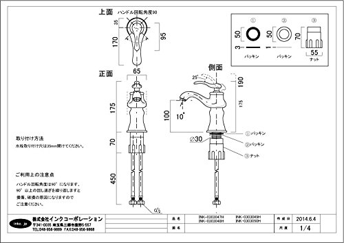 【サイズ】 幅:65mm 奥行き:175mm 高さ:180mm 吐水口高さ:110mm 【素材】 銅合金 【セット内容】 ・本体 ・フレキホース2本 ・取付金具 【取り付けについて】 取付工事は弊社でも承っておりますので、お気軽にご相談くださいませ。 または お近くの工務店様にご相談くださいませ。 【備考】 ・日本規格に適合致します。 ・在庫が無い場合、ご注文から納品まで約1ヶ月から1ヶ月半程、 お待ち頂く場合がございます。 ・こちらの商品は混合水栓となっております。 ・水栓取付穴は35mm開けて下さい。 ■ご不明な点などございましたらお気軽に当社までお問い合わせ下さいませ。