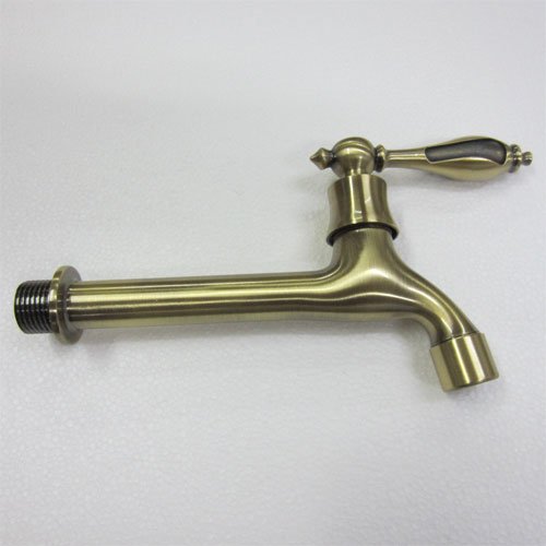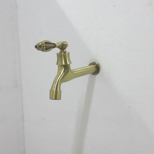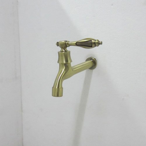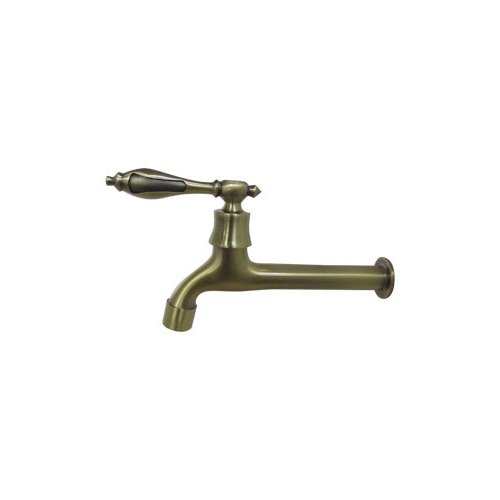 - 洗面水栓 蛇口 水栓金具 壁付用単水栓 シングルレバーハンドル アンティークゴールド(古金) [奥行19.3cm] INK-0302021G
