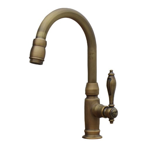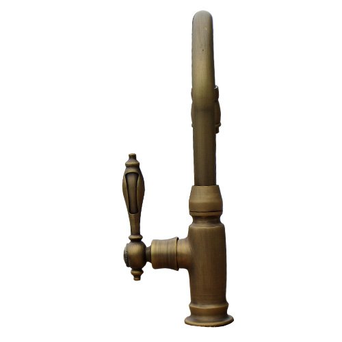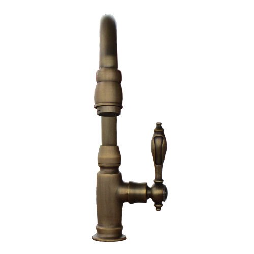 - 洗面水栓 蛇口 水栓金具 単水栓 シングルレバーハンドル(スパウト可動式) ブロンズ(古銅) [奥行17.5×吐水口高15cm] INK-0302046H