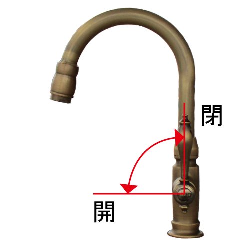 洗面水栓 蛇口 水栓金具 単水栓 シングルレバーハンドル(スパウト可動式) ブロンズ(古銅) [奥行17.5×吐水口高15cm] INK-0302046H