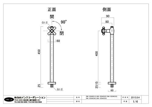 INK-0304034G 床給水用ストレート止水栓 アンティークゴールド(古金)