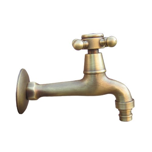 洗面水栓 蛇口 水栓金具 洗濯機用壁付け単水栓 クロスハンドル ブロンズ(古銅) [奥行13.8cm] INK-0302068H