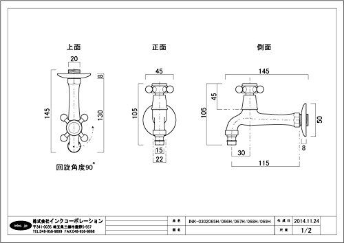 洗面水栓 蛇口 水栓金具 洗濯機用壁付け単水栓 クロスハンドル ブラック(黒) [奥行13.8cm] INK-0302067H
