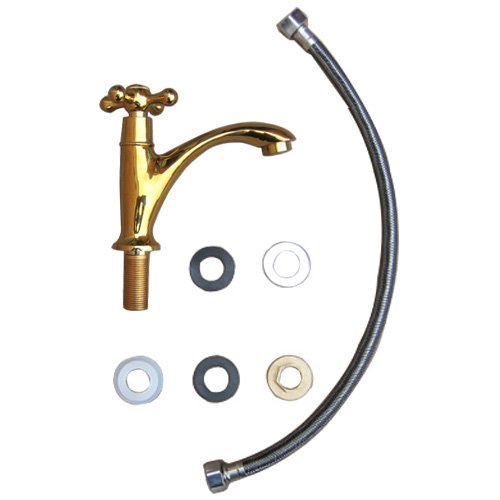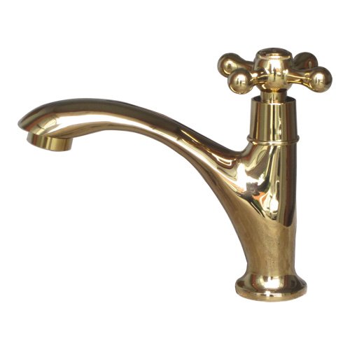 洗面水栓 蛇口 水栓金具 単水栓 クロスハンドル ゴールド(金) [奥行15.5×吐水口高9cm] INK-0302061H