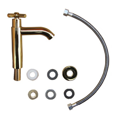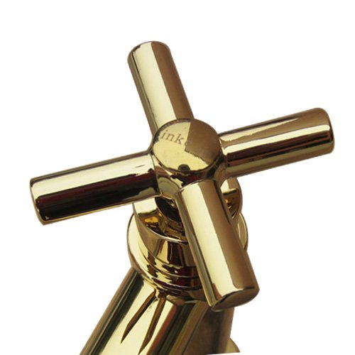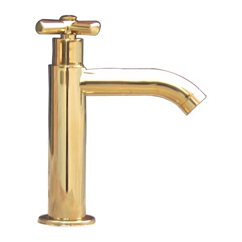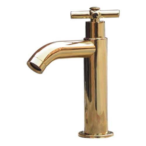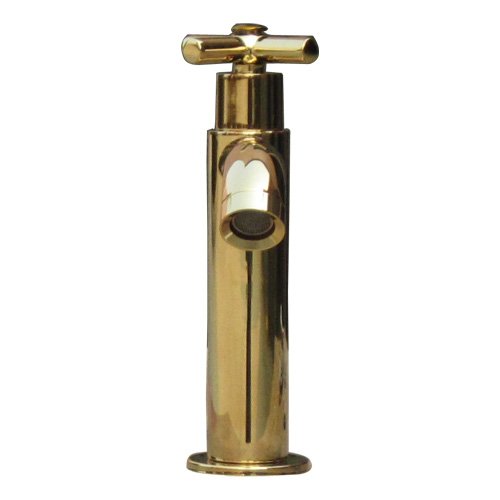洗面水栓 蛇口 水栓金具 単水栓 クロスハンドル ゴールド(金) [奥行15×吐水口高9cm] INK-0302056H