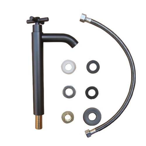 洗面水栓 蛇口 水栓金具 単水栓 クロスハンドル トールタイプ ブラック(黒) [奥行16×吐水口高22.5cm] INK-0302053H