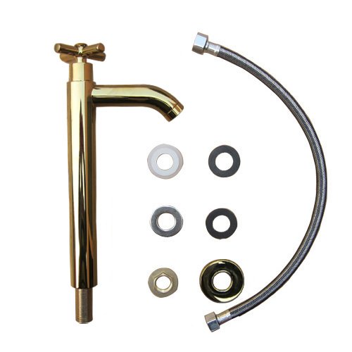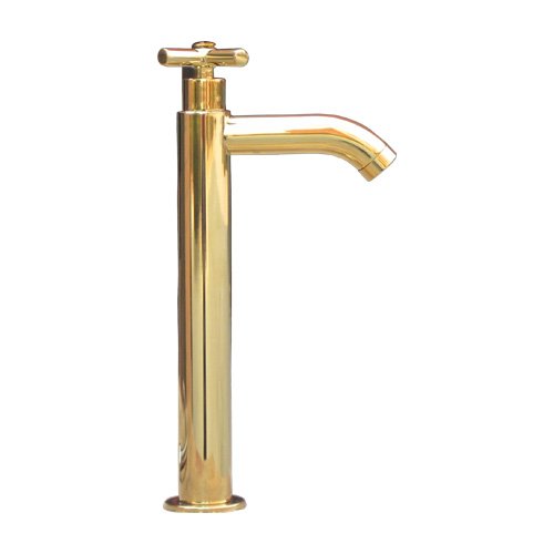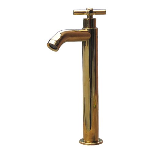 洗面水栓 蛇口 水栓金具 単水栓 クロスハンドル トールタイプ ゴールド(金) [奥行16×吐水口高22.5cm] INK-0302052H
