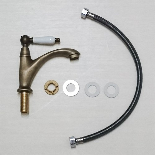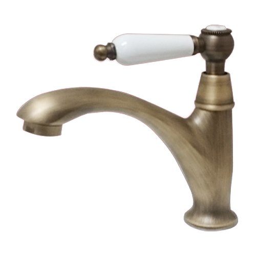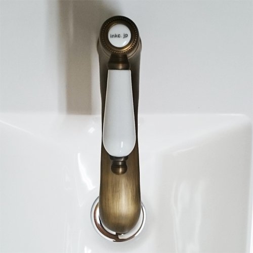 洗面水栓 蛇口 水栓金具 単水栓 シングルレバーハンドル 陶器 ブロンズ(古銅) [奥行16.5×吐水口高8cm] INK-0302064HT